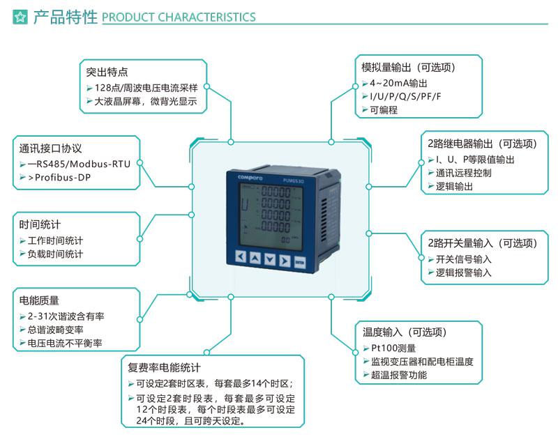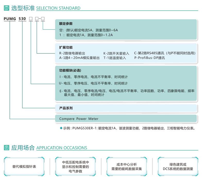 PUMG530系列三相智能電力儀表具有精確的電力參數(shù)測量功能,儀表采用先進的ARM處理器和數(shù)字信號處理技術設計而成;集三相電參量測量、顯示、電能統(tǒng)計、電能質(zhì)量分析、數(shù)字輸入/輸出及網(wǎng)絡通訊于一體;具有精度高、隔離性強、性能穩(wěn)定、抗干擾能力強等優(yōu)點。該儀表還有很強的擴展功能,如監(jiān)視外部開關動作、4~20mA模擬量輸出,還可以通過RS-485通訊實現(xiàn)儀表的網(wǎng)絡化管理。
