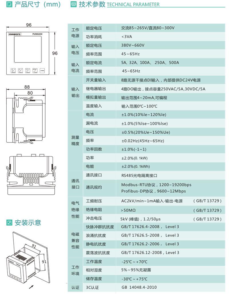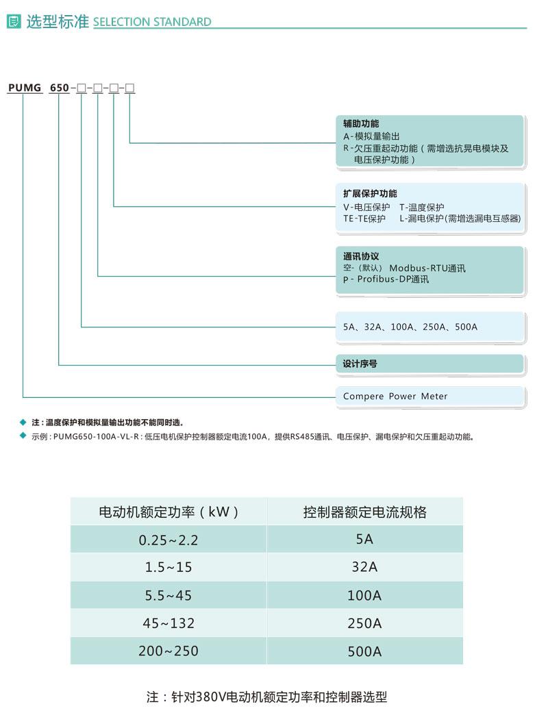 PUMG650系列低壓電動機保護控制器適用于額定電壓380V至660V、額定電流5A至500A的控制保護回路,提供了完善的保護控制措施,基于多種總線的通訊方式可以實現電機的網絡化管理.