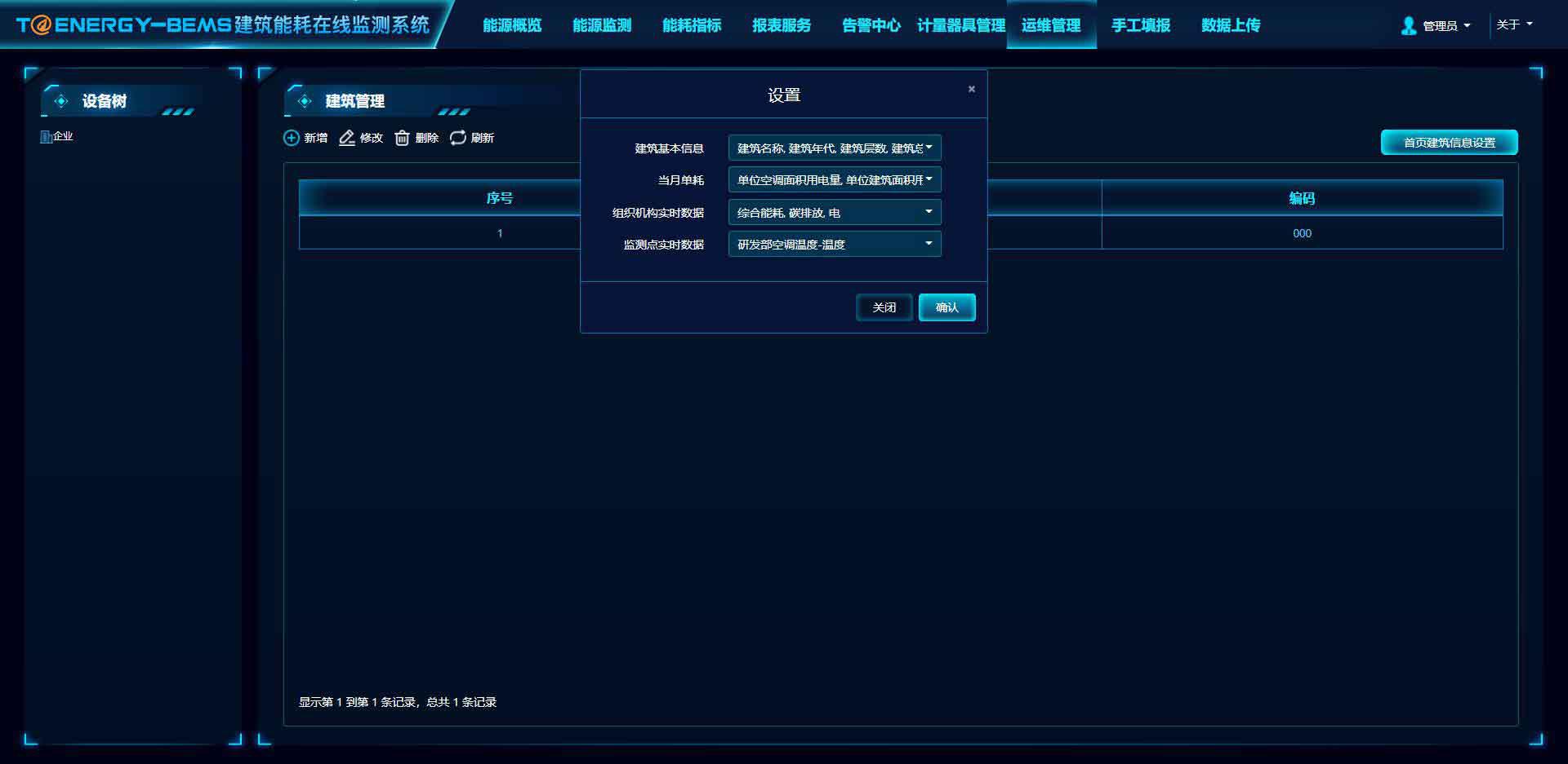 建筑體的配置管理,包括基本屬性、能源單價、使用人數