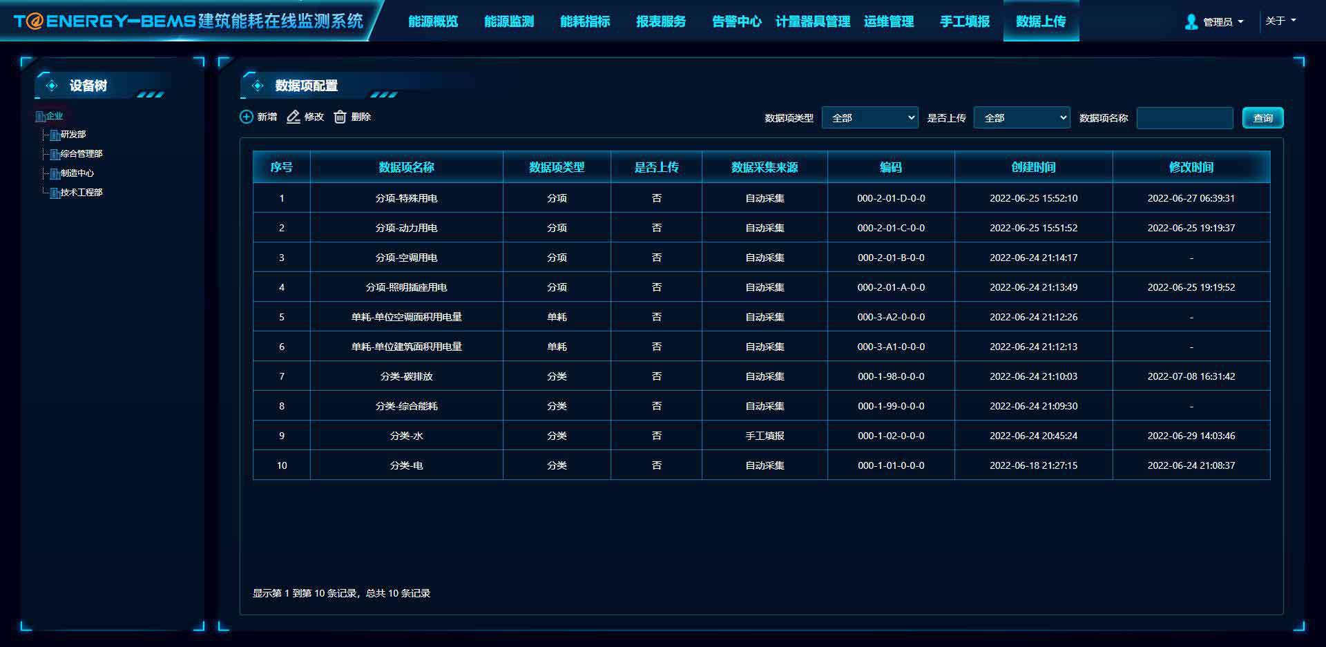實現能耗數據的上傳配置和查看。