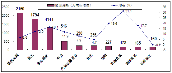 我國8個主要耗能工業行業的單位產品能耗平均比世界先進水平高47%以上,8個行業的能源消費占工業部門能源消費總量的73%。