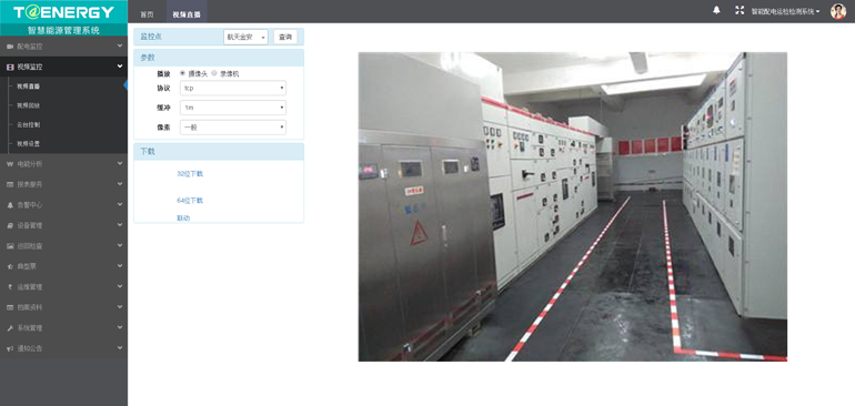 視頻監控顯示站房的監控視頻界面,帶云臺功能??稍O定定期巡視、事件聯動巡視(異物入侵、事件聯動)。