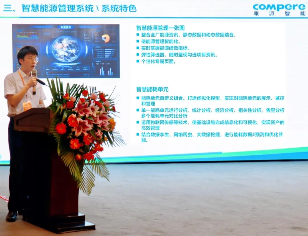 在企業(yè)演講環(huán)節(jié),康派智能產(chǎn)品經(jīng)理黃森先生代表公司做專題演講,針對智慧能源管理系統(tǒng)的建設(shè)與應(yīng)用問題進(jìn)行講解,并以