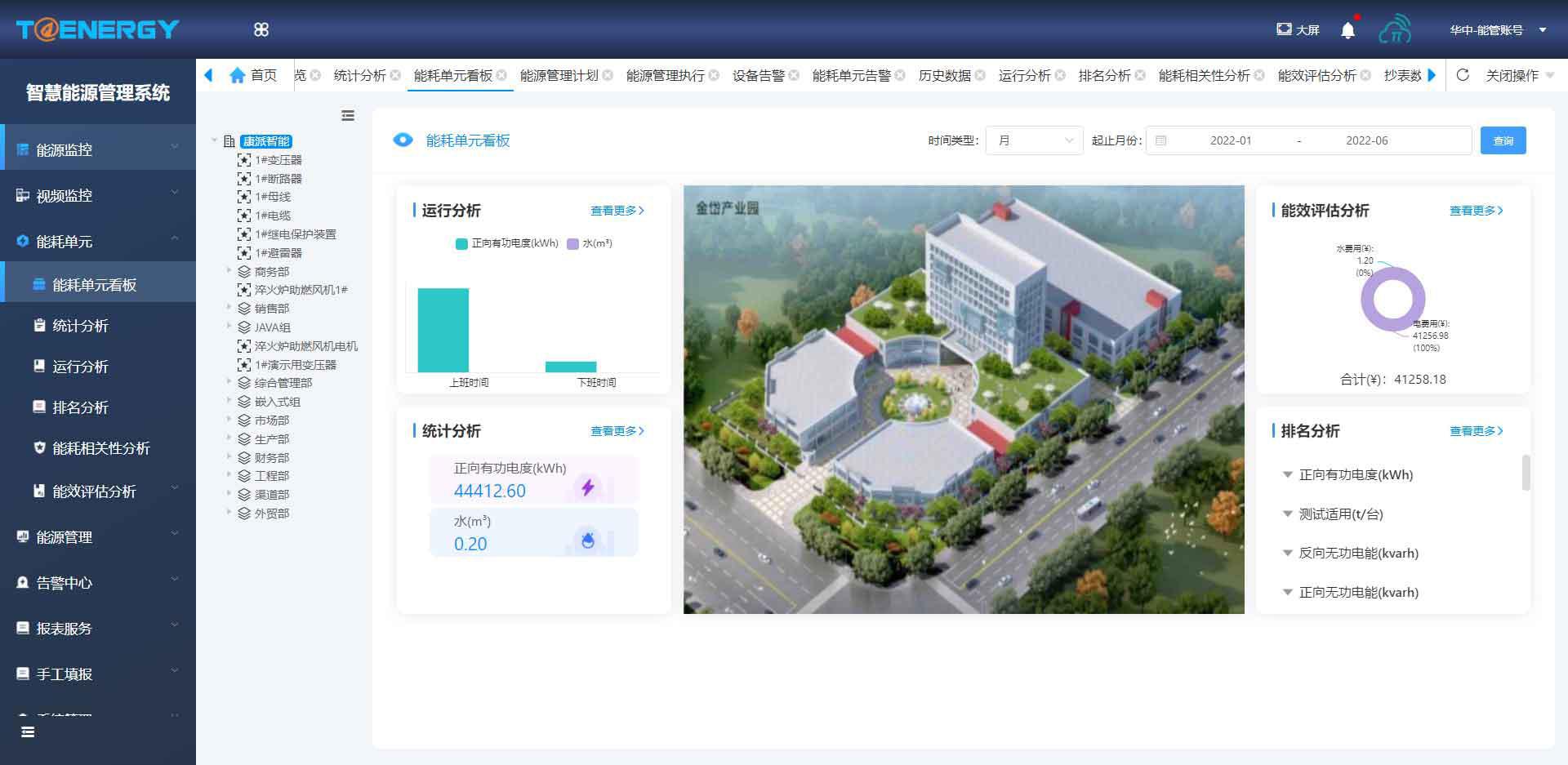 T@Energy智慧能源管理系統(tǒng)主要功能包括能源看板、能源監(jiān)控、視頻監(jiān)控、能耗統(tǒng)計(jì)、能耗分析、報(bào)表服務(wù)、生產(chǎn)管理、告警中心、設(shè)備管理等。下面主要介紹能源監(jiān)控、能耗統(tǒng)計(jì)、報(bào)表服務(wù)、告警中心四項(xiàng)功能: