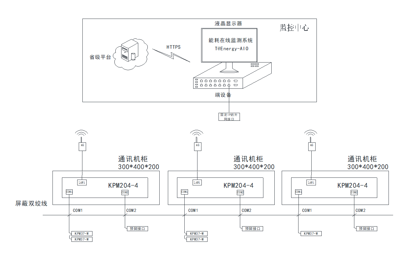 端設(shè)備安裝在企業(yè)配置中心,需要有可用的外網(wǎng)和內(nèi)網(wǎng)接口,由于通訊管理機使用4G的方式傳輸數(shù)據(jù),因此端設(shè)備安裝位置比較靈活。